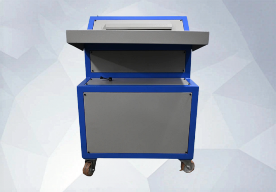 Plastic film grinders work on thin plastic materials like packaging film or plastic sheets.